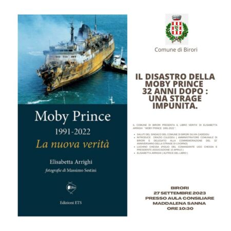 Il giorno 27 settembre 2023, alle ore 10:30 presso l'Aula Consiliare "Maddalena Sanna", si terrà la presentazione del libro di Elisabetta Arrighi dal titolo "Moby Prince, 1991-2022, La nuova verità", in ricordo del compianto cittadino Gianfranco Campus.